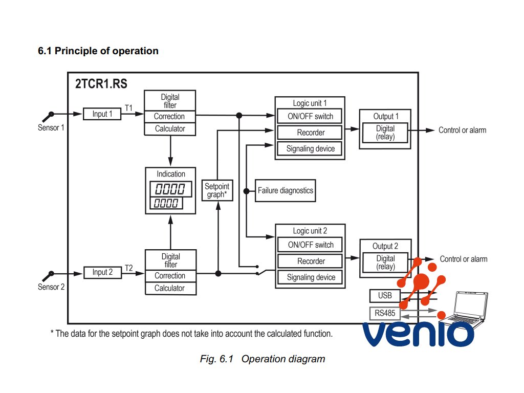 2TCR1 je univerzálny regulátor novej generácie pre montáž do panelu (2-kanálový on/off kontrolér). Je určený pre reguláciu procesov s jedným alebo dvomi vstupnými signálmi. Výstup je 2x SPDT relé 8A. Použitie regulátora je tiež možné s využitím iba jedného vstupu a výstupu.