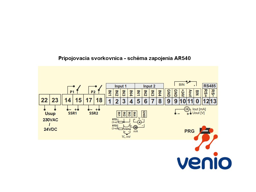 - AR540-S2-P-P-RS485-WU (napájanie 24VAC/VDC, 2x výstupné relé, RS485, výstup 0-10V)