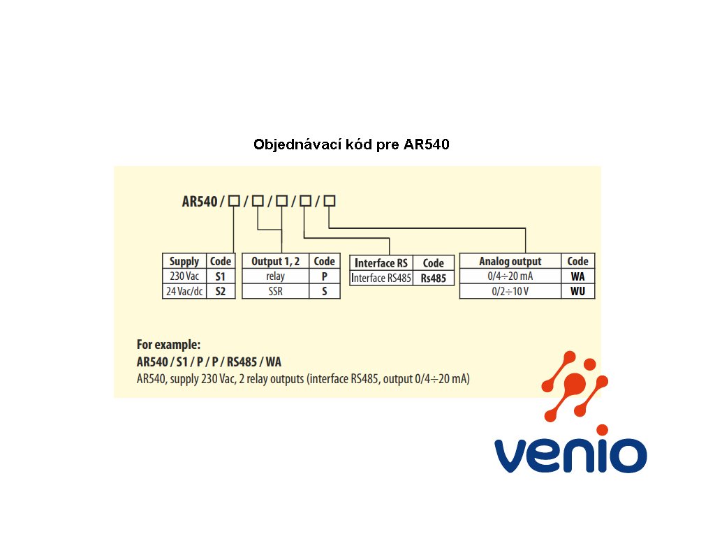 - AR540-S1-P-P-RS485-WA (napájanie 230VAC, 2x výstupné relé, RS485, výstup 4-20mA)