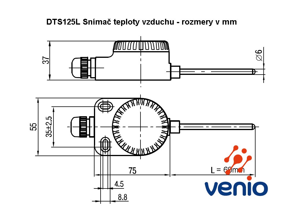 Snímač teploty vzduchu Pt1000, typ DTS125L-Pt1000.2W.60
