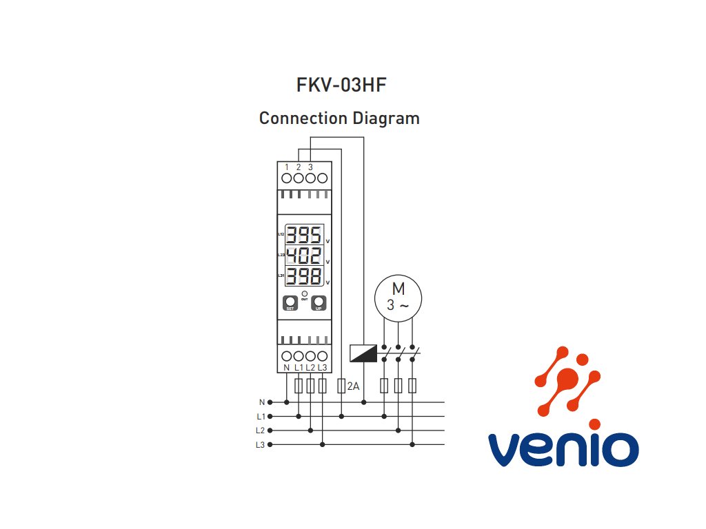 Napäťové fázové relé FKV-03HF s displejom, sledovanie: poradie fáz, výpadok fázy, asymetria, napätie