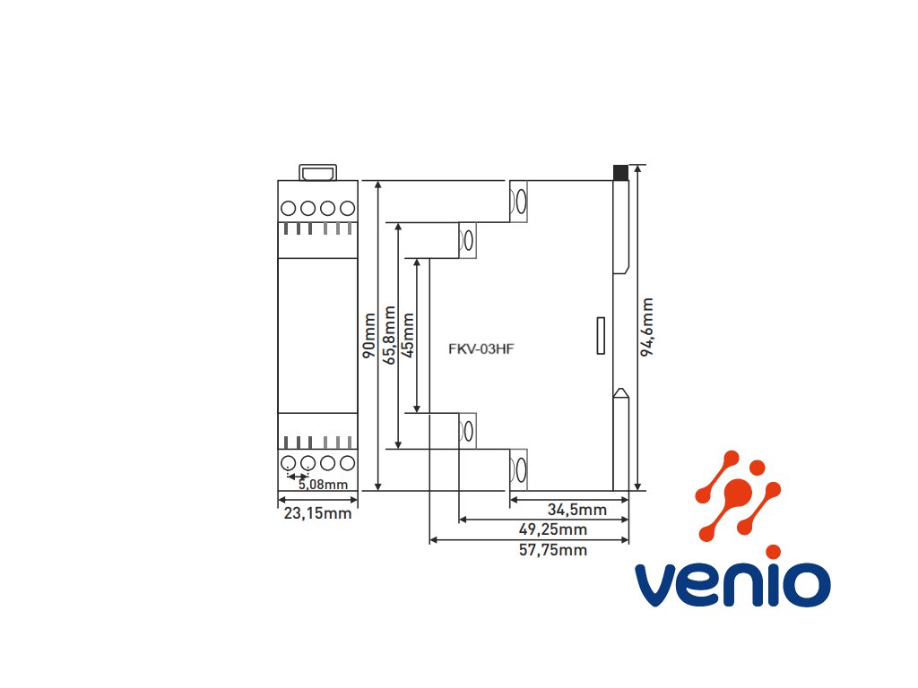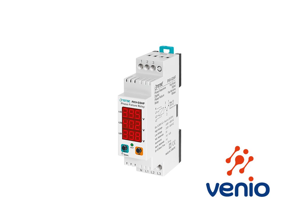 Napäťové fázové kontrolné relé FKV-03HF pre meranie združeného napätia, poradia fáz, výpadku fázy a asymetrie fázového napätia až o 50%.