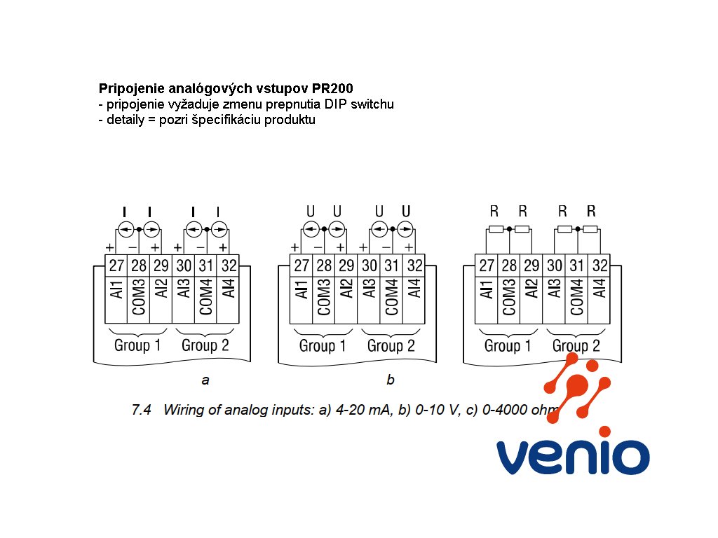 - univerzálne analógové vstupy pre 4-20mA, 0-10V, 0-4000Ohm nastaviteľné DIP prepínačom