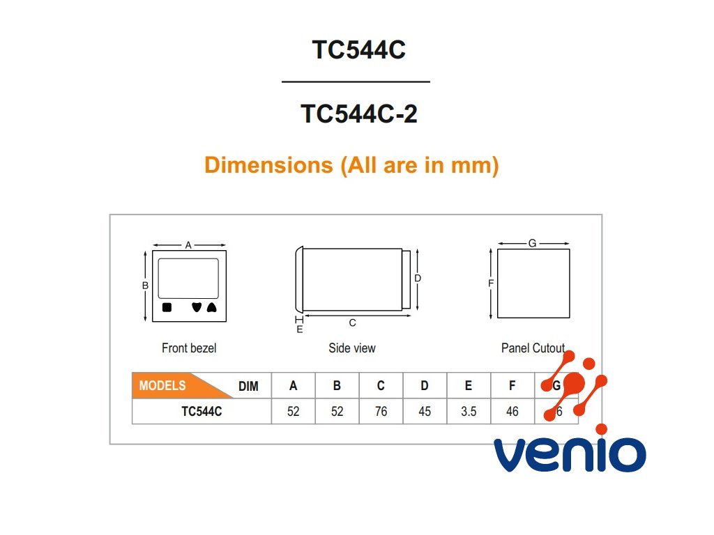 Panelový regulátor teploty TC544C-2-CE je regulátor s bielymi číslicami pre ohrev alebo chladenie pre montáž do panelu s univerzálnym vstupom.