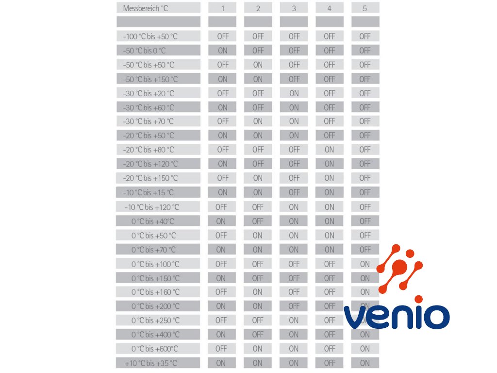 Rozsah výstupu nastaviteľných DIP prepínačom, podľa tabuľky