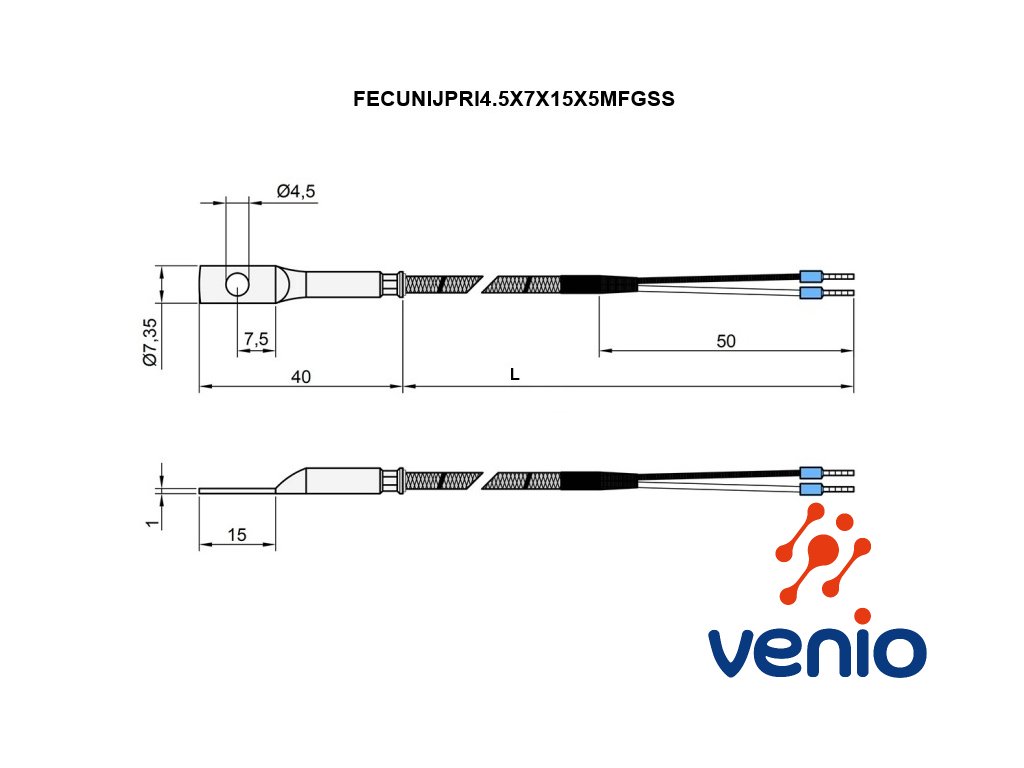 Snímač teploty Fe-CuNi Typ J príložný Ø4,5x15x7mm 400°C kábel 5m nerez oplet