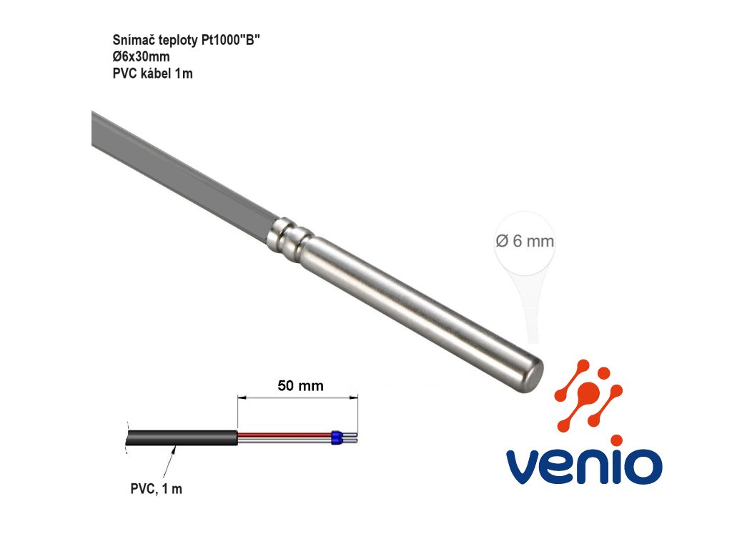 Snímač teploty Pt1000B, Ø6x30mm PVC kábel 1 m