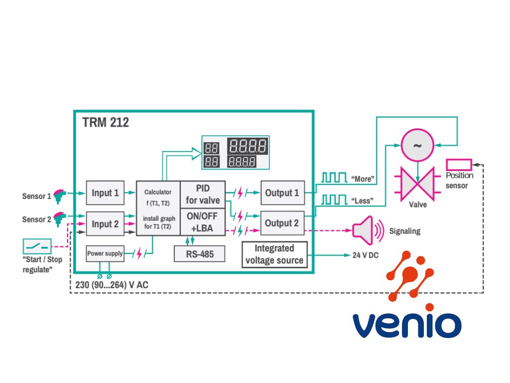 Procesný regulátor TRM212 je navrhnutý na meranie a kontrolu teploty alebo iných fyzikálnych veličín v rôznych oblastiach ľahkého a ťažkého priemyslu, poľnohospodárstva, energetiky a vykurovania budov. Regulátor je špeciálne dizajnovaný na riadenie analógových alebo trojstupňových regulačných ventilov.